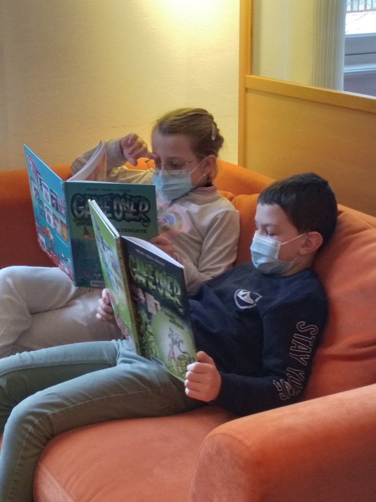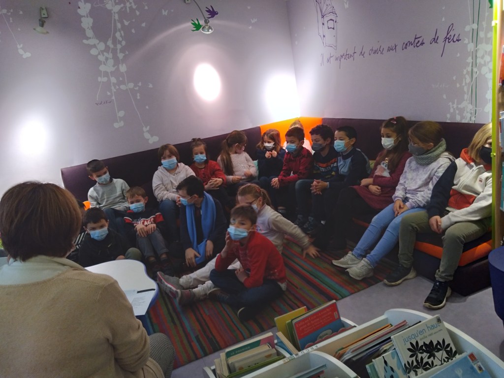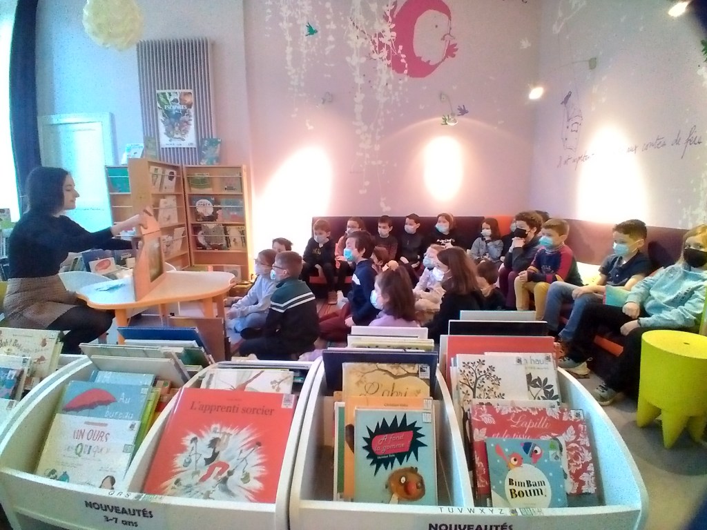 Nous nous rendons régulièrement à la bibliothèque municipale écouter des histoires et choisir des livres que nous empruntons.